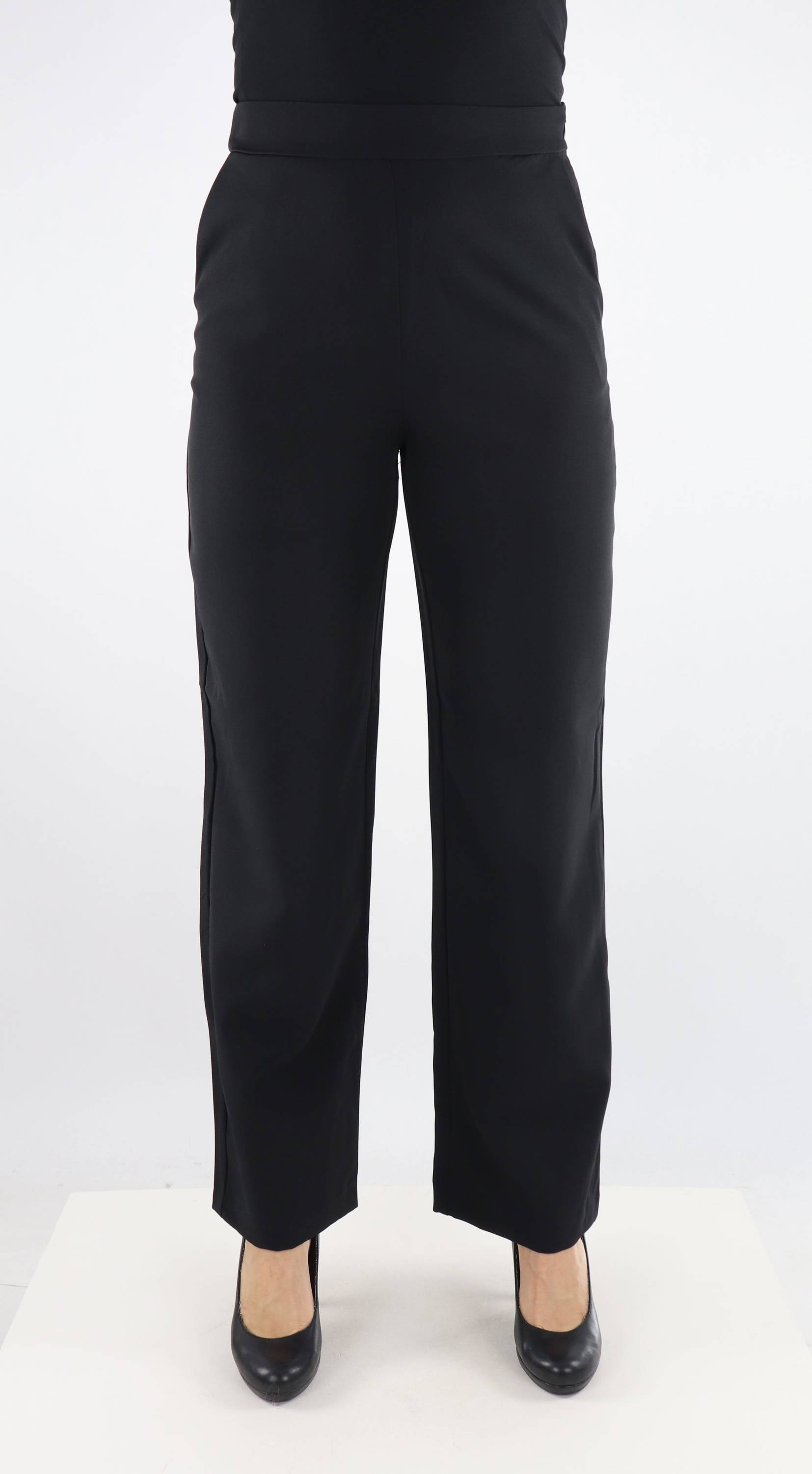 Classic pants with wide legs, high waist, zipper fastening and side pockets.