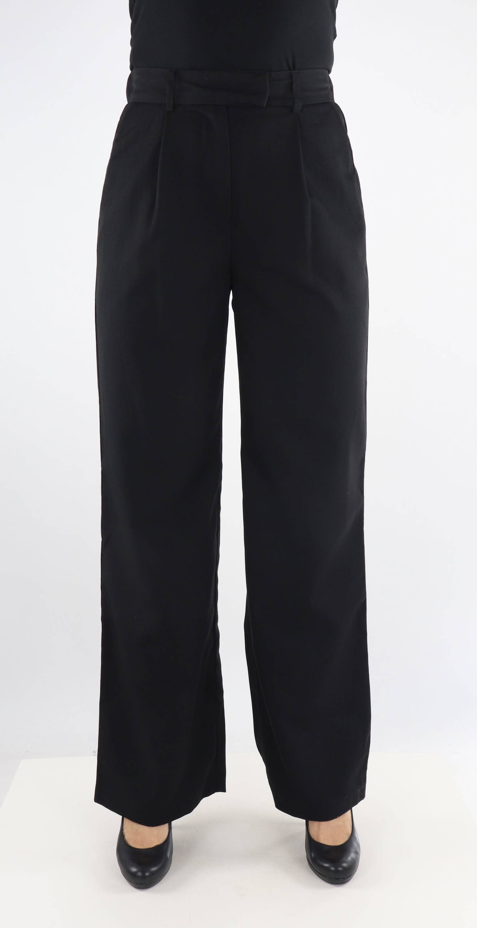 High waisted straight fit pants with button and zipper fastening and side pockets.