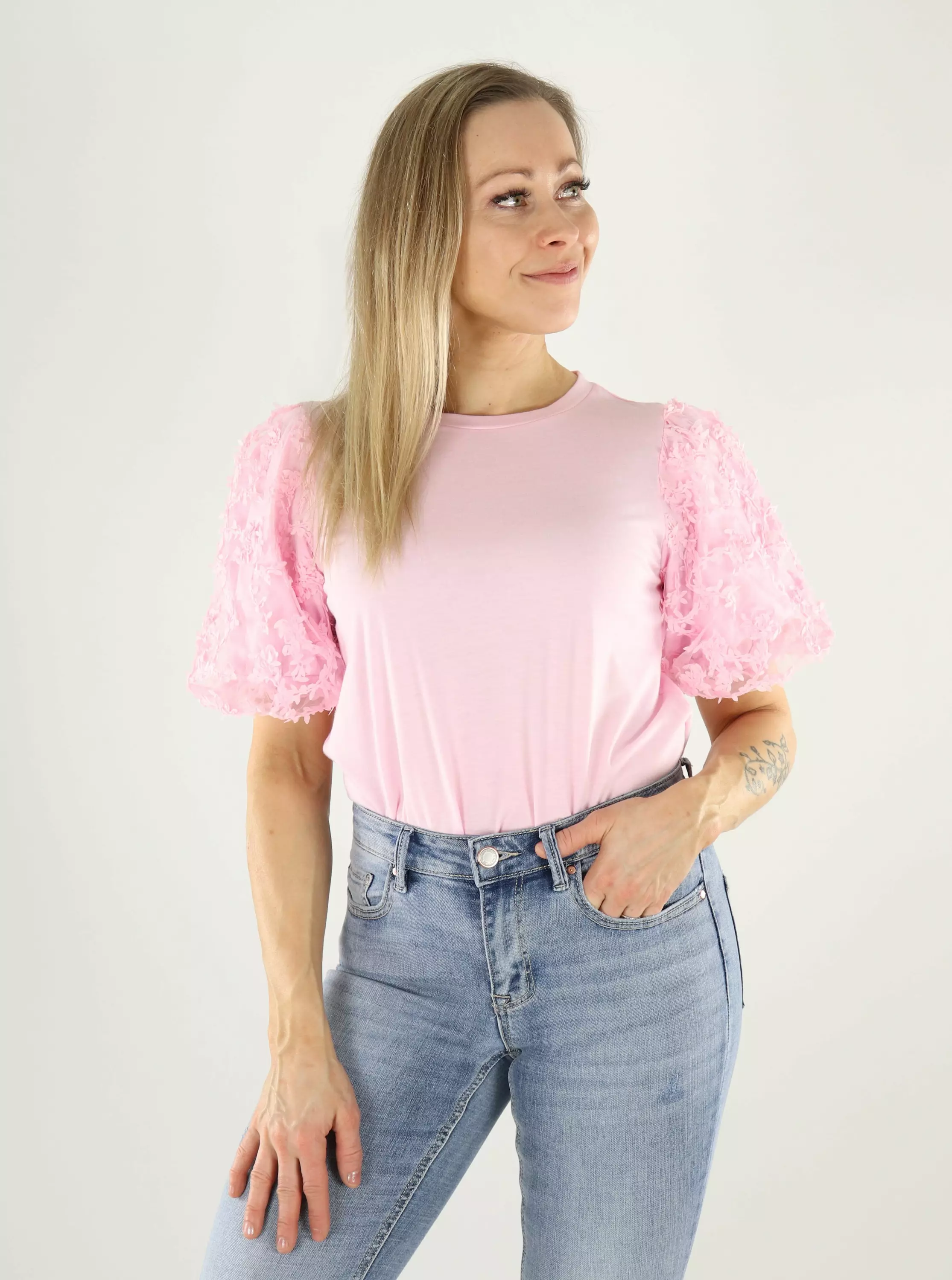 A casual and timeless t-shirt from Vila with wonderfully voluminous lace sleeves.
