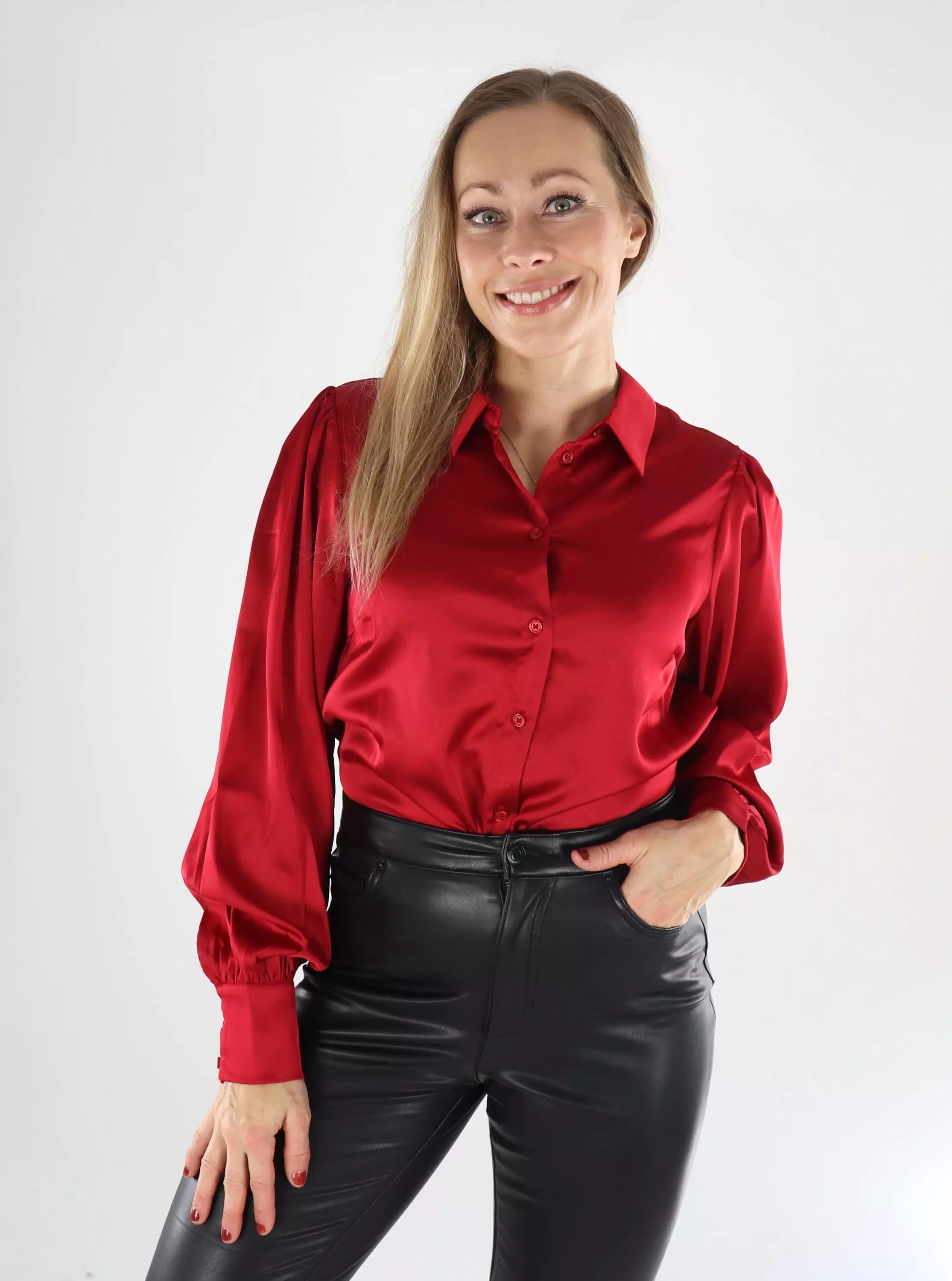 A red satin shirt from Vila will add poise and a touch of luxury to your outfit! The shiny surface and simple cut make it easy to combine with both trousers and skirts.