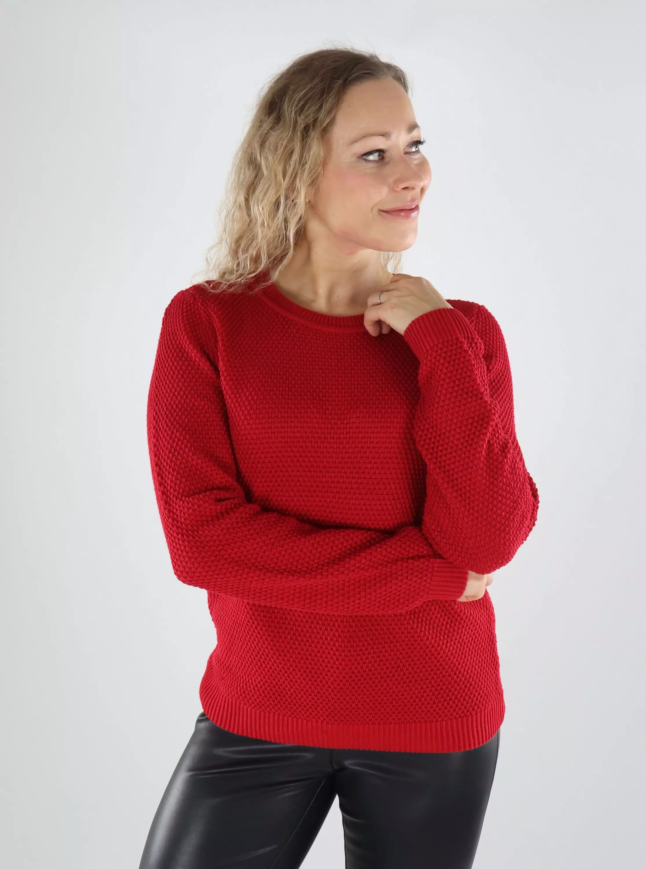 Soft and breathable sweater made of 100% organic cotton - responsibility and comfort in one package! The red shade brings a boost to everyday dressing.