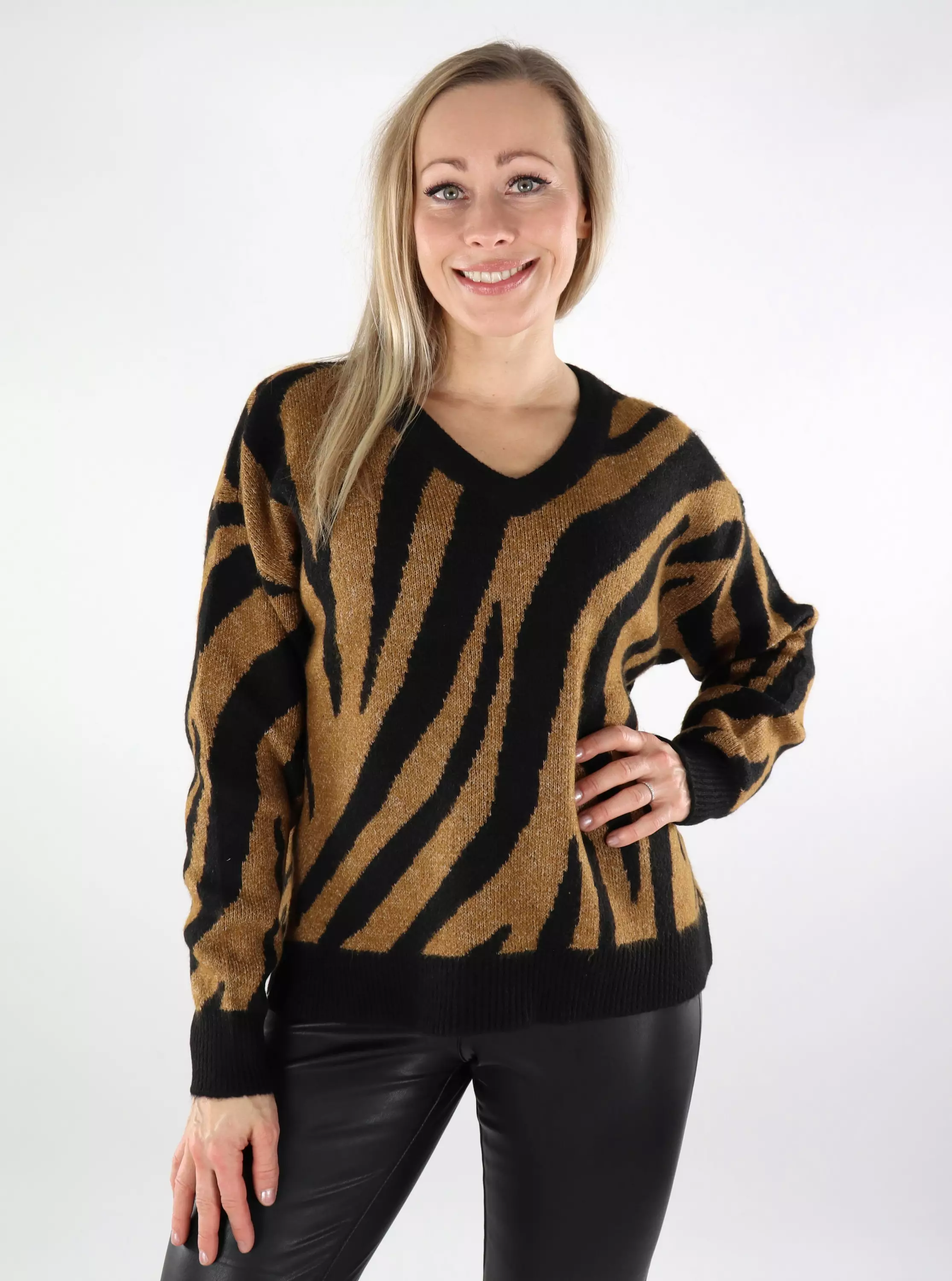 Soft sweater with a V-neckline and beautiful zebra patterns.