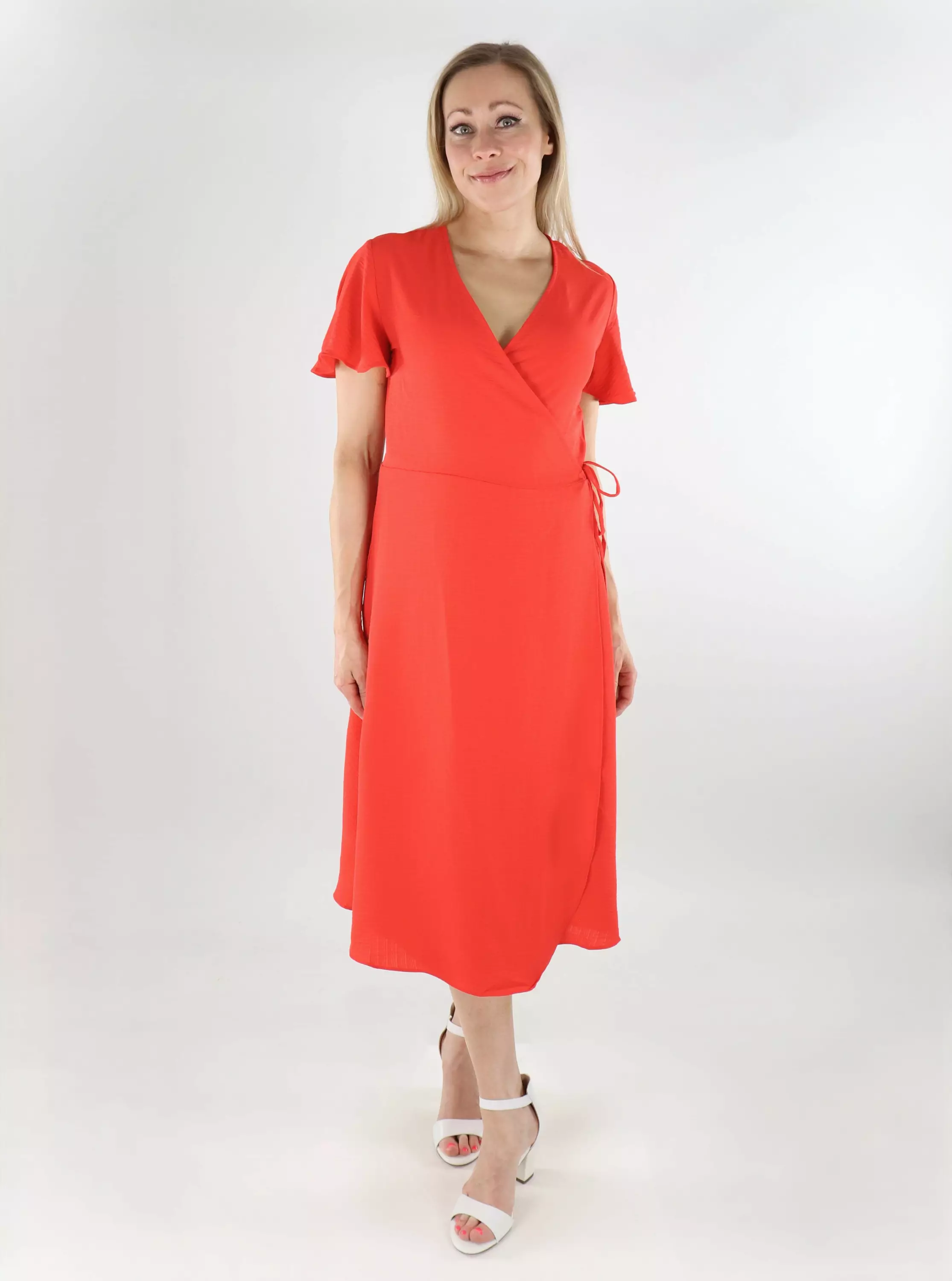 A bright red wrap dress from Vila, which is easy to combine with sandals for everyday wear and heels for a party! The stretchy and soft material makes it really comfortable to wear.