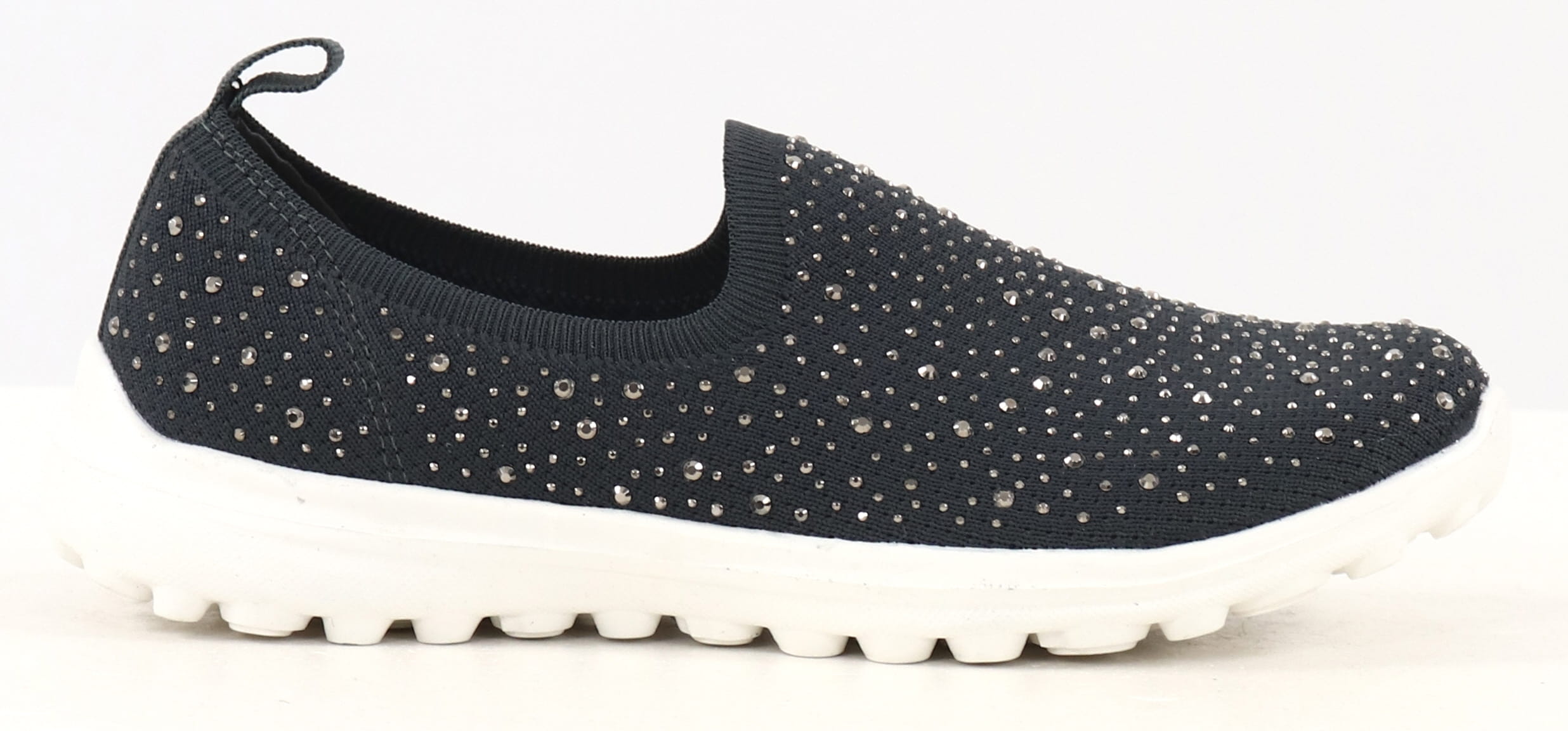 Textile walking shoes with decorative strasses