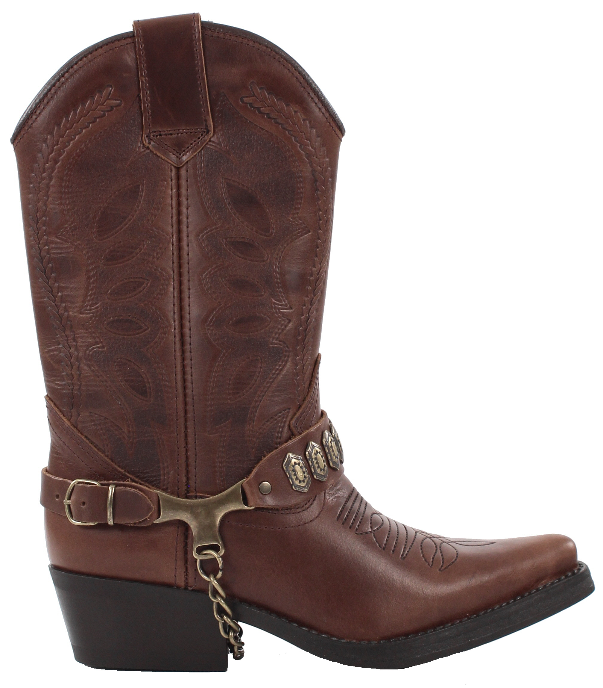 -Leather boots with removable decorative strap-Decorative stitchings-Textile lining-Heel height about 4 cm